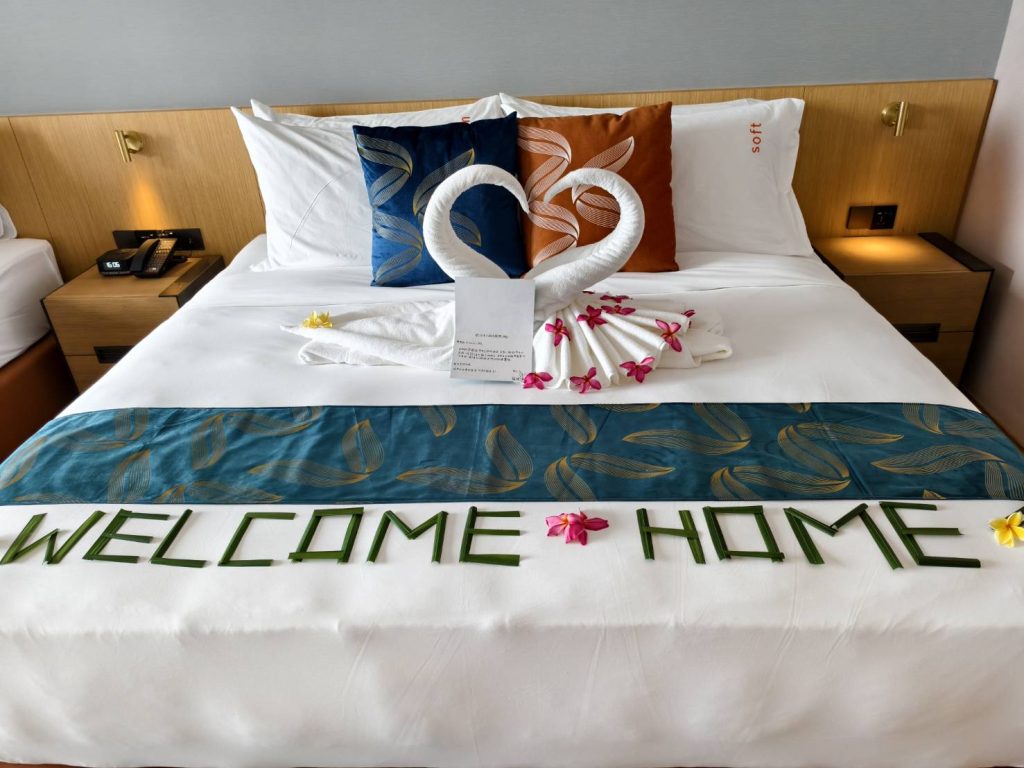 客戶抵達酒店辦理入住手續,進入房間時被酒店精心佈置的溫馨氛圍感動,貼心地佈置「WELCOME HOME」字樣。